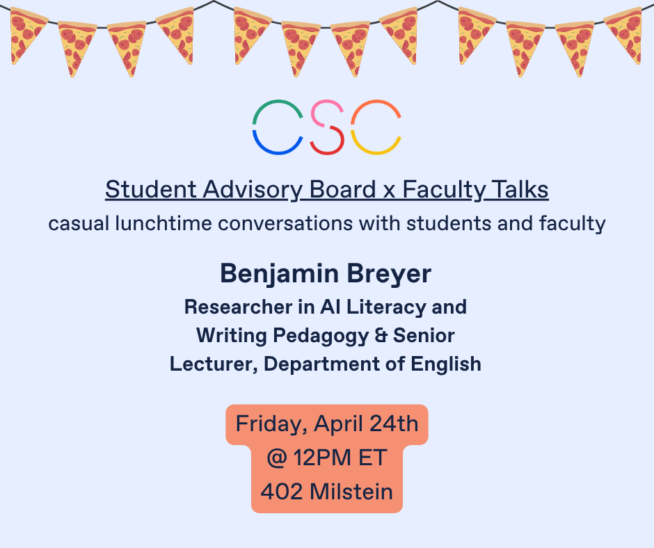 Join us for the third and final installment of the CSC Student Advisory Board x Faculty Talks for the academic year.